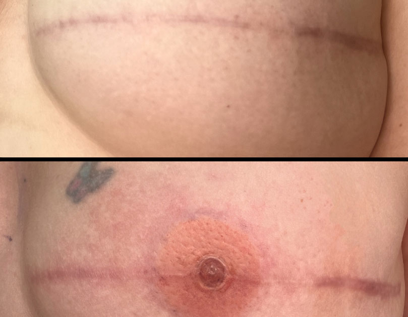 This client is a survivor of breast cancer who had gone through a double mastectomy and reconstruction. I helped her by recreating the appearance of a nipple and areola complex with 3D realism tattoos. This service is the last step in a breast cancer journey and can help women feel closure to that part of their life. It can also feel as if the reconstruction is complete.