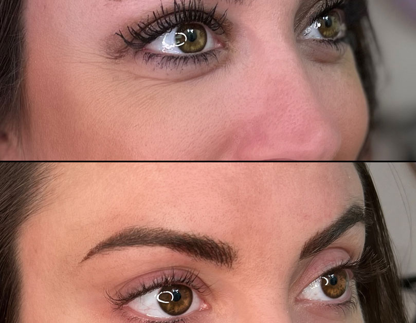 This client felt self conscious about her disappearing tail. This is common and can be corrected with a combo brow. Combo brows are the best of both worlds with natural hair strokes and shading added for precise definition.